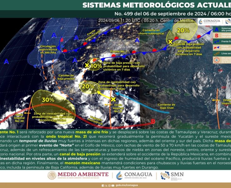 El Servicio Meteorológico Nacional (SMN) prevé que el frente No. 1 será reforzado por una nueva masa de…