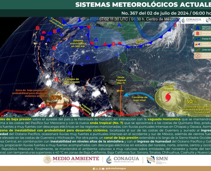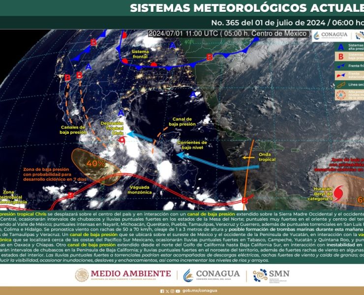Así como lluvias intensas en Chihuahua, Nayarit, Jalisco, Colima, Michoacán, Oaxaca, Guerrero y Chiapas El…