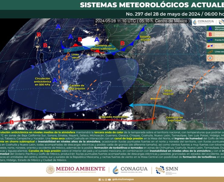 *Así como posibles torbellinos y tornados en Chihuahua, Coahuila, Nuevo León, Tamaulipas, Durango, Zacatecas y…