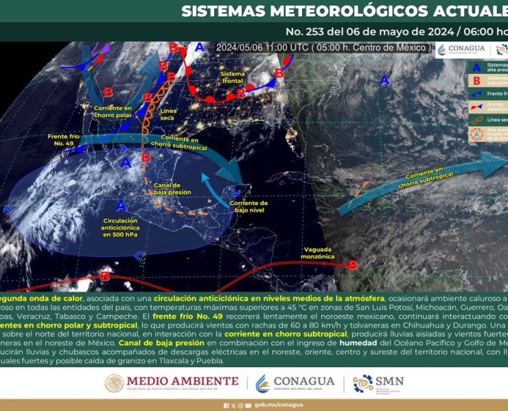 El Servicio Meteorologico Nacional (SMN)prevé para este día, un nuevo frente frío (No. 49) ingresará al noroeste…