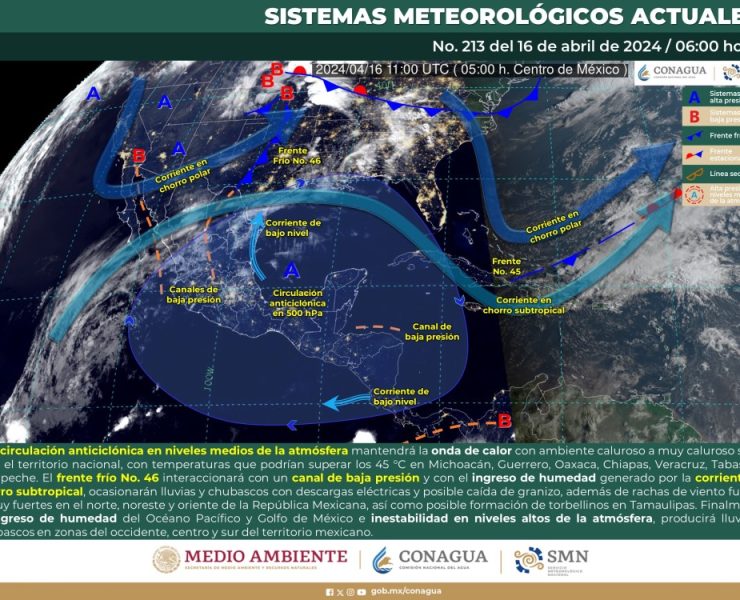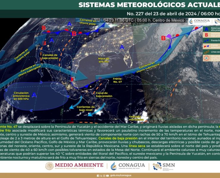 El Servicio Meteorológico Nacional (SMN) prevé para este día que, el frente No. 47 se desplazará…