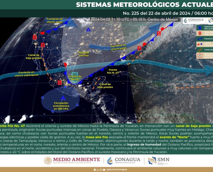 El Servicio Meteorológico Nacional (SMN) prevé que para este día, el frente frío No. 47 recorrerá…