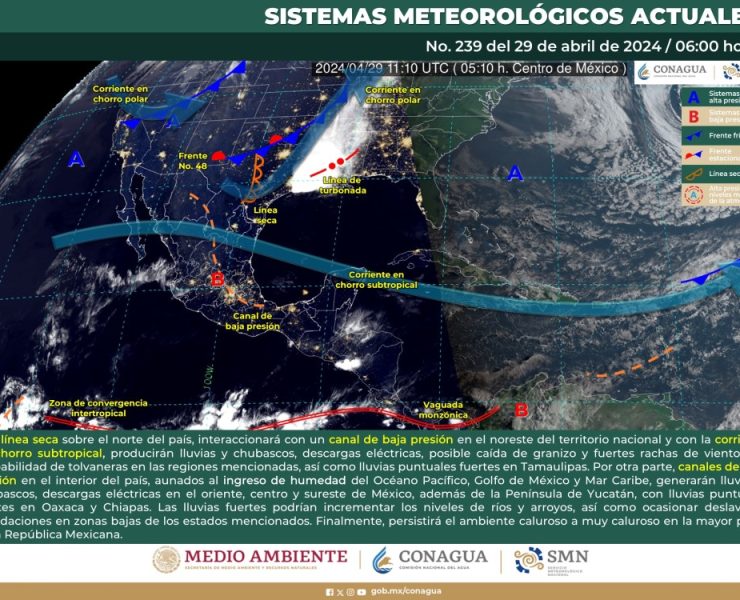 El Servicio Meteorogico Nacional (SMN) prevé para hoy, una línea seca sobre Coahuila, en interacción con canales…