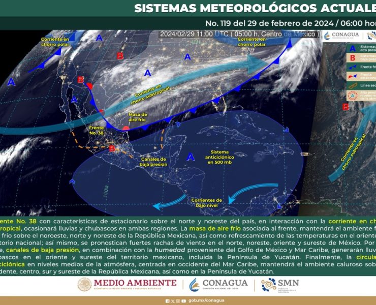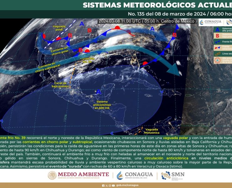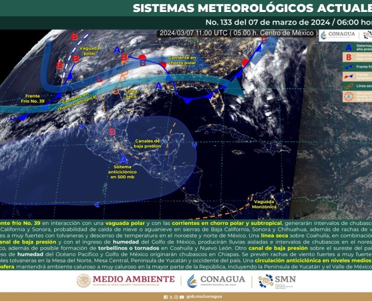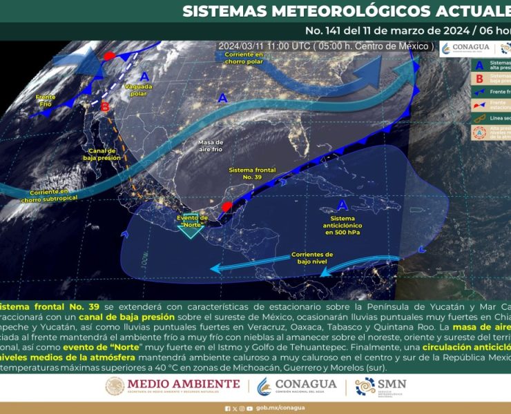 El Servicio Meteorológico Nacional (SMN), prevé que para hoy, el sistema frontal No. 39 se extenderá…