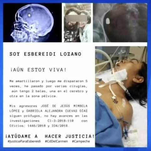 De acuerdo con las indagatorias, el ataque fue planeado por ambos imputados. José de Jesús habría facilitado el ingreso de Gabriela al domicilio de la víctima, quien la consideraba su mejor amiga. En el lugar, Esbereidi sufrió lesiones graves por golpes con un martillo y disparos de arma de fuego. Posteriormente, los agresores intentaron trasladarla a un rancho cercano para simular un asalto y encubrir el crimen.