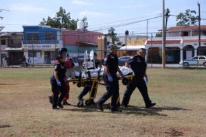 Por La Chispa informa sobre el traslado aeromédico activado por la Secretaría de Seguridad Pública (SSP) en apoyo a una joven que resultó severamente lesionada en un hecho de tránsito ocurrido en la salida de Tekax hacia Ticum.
