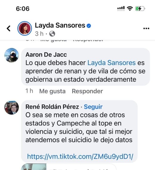 Tunden a Layda en redes por criticar a Renán Barrera quien realizó comentarios por el tema de inseguridad que se vive en Campeche.