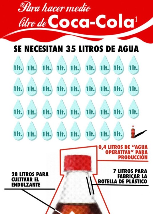La producción de cerveza y refrescos requiere grandes cantidades de agua: se necesitan más de 34 litros de agua para producir solo 1 litro de Coca-Cola.
