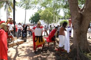 La jornada culminó al mediodía con una escenificación impactante de la crucifixión en la cancha de fútbol del centro.