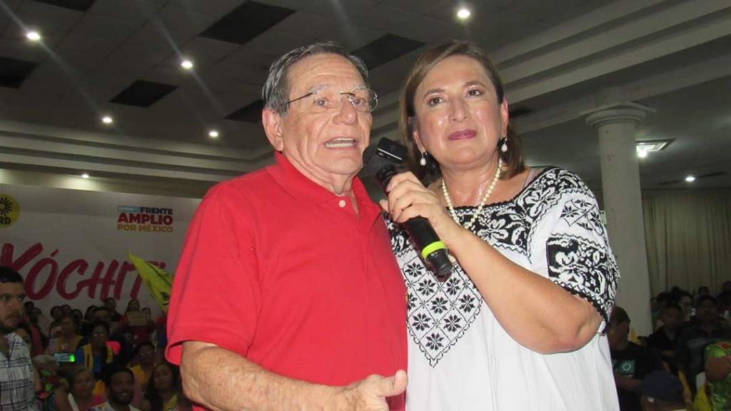 El ex gobernador Jorge Carlos Hurtado Valdez subió al escenario para reconocer la labor de Xóchitl cuando fue representante del Gobierno Federal en Campeche.
