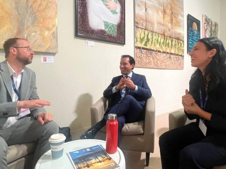 con el CEO de Cemex, Fernando González para abundar sobre el cambio climático, así como con el encargado de Asuntos Políticos y Económicos de la Embajada de los Emiratos Árabes Unidos en México, Sultán Mohamed Saeed AlTaei.